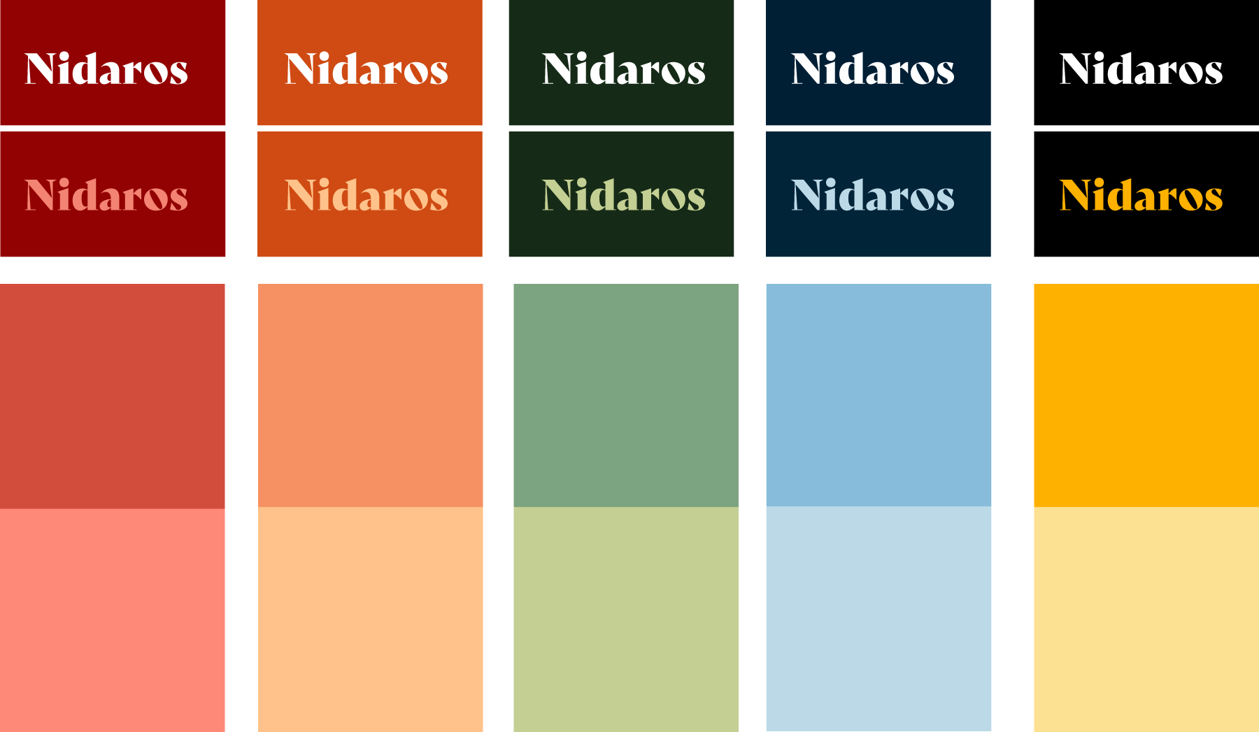 I 2025 jobbet jeg i samarbeid med kollega om å justere og styrke Nidaros sin eksisterende visuelle profil, særlig med tanke på SoMe. Arbeidet startet med justering av fargepaletten for bedre kontrast, tydeligere hierarki og mer funksjonell bruk på skjerm.